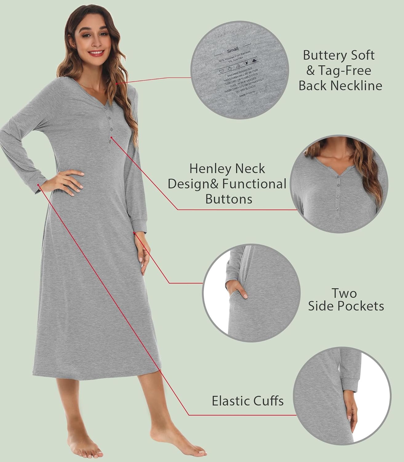 The video showcases the product in use.The video guides you through product setup.The video compares multiple products.The video shows the product being unpacked. bamboo viscose nightgowns for women long sleeve Merchant Video