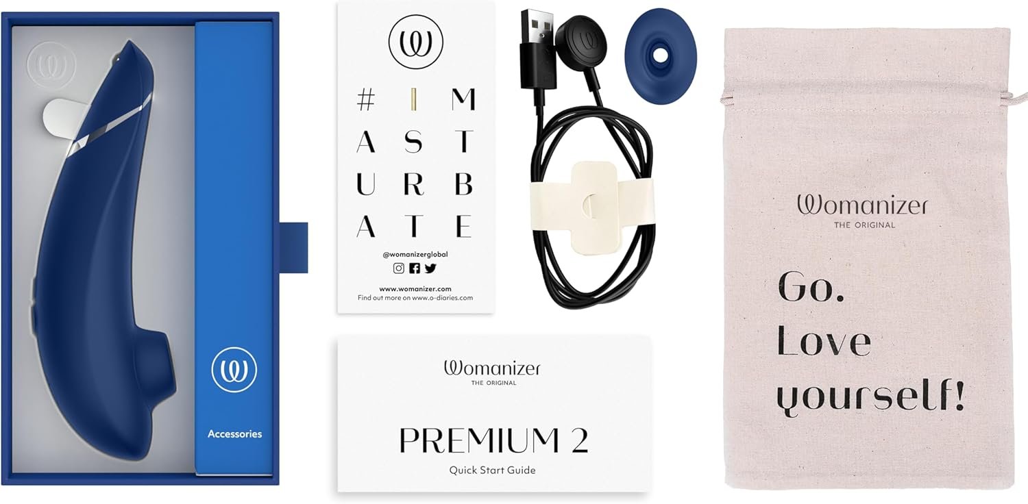 Womanizer Premium 2 Clitoris Vibrator for Women | Clit Sucker Adult Toys | Vibrating Adult Sex Toy | Clit Stimulator for Woman with 14 Suction Speeds | Waterproof Clitoral Stimulation Massager | Blue