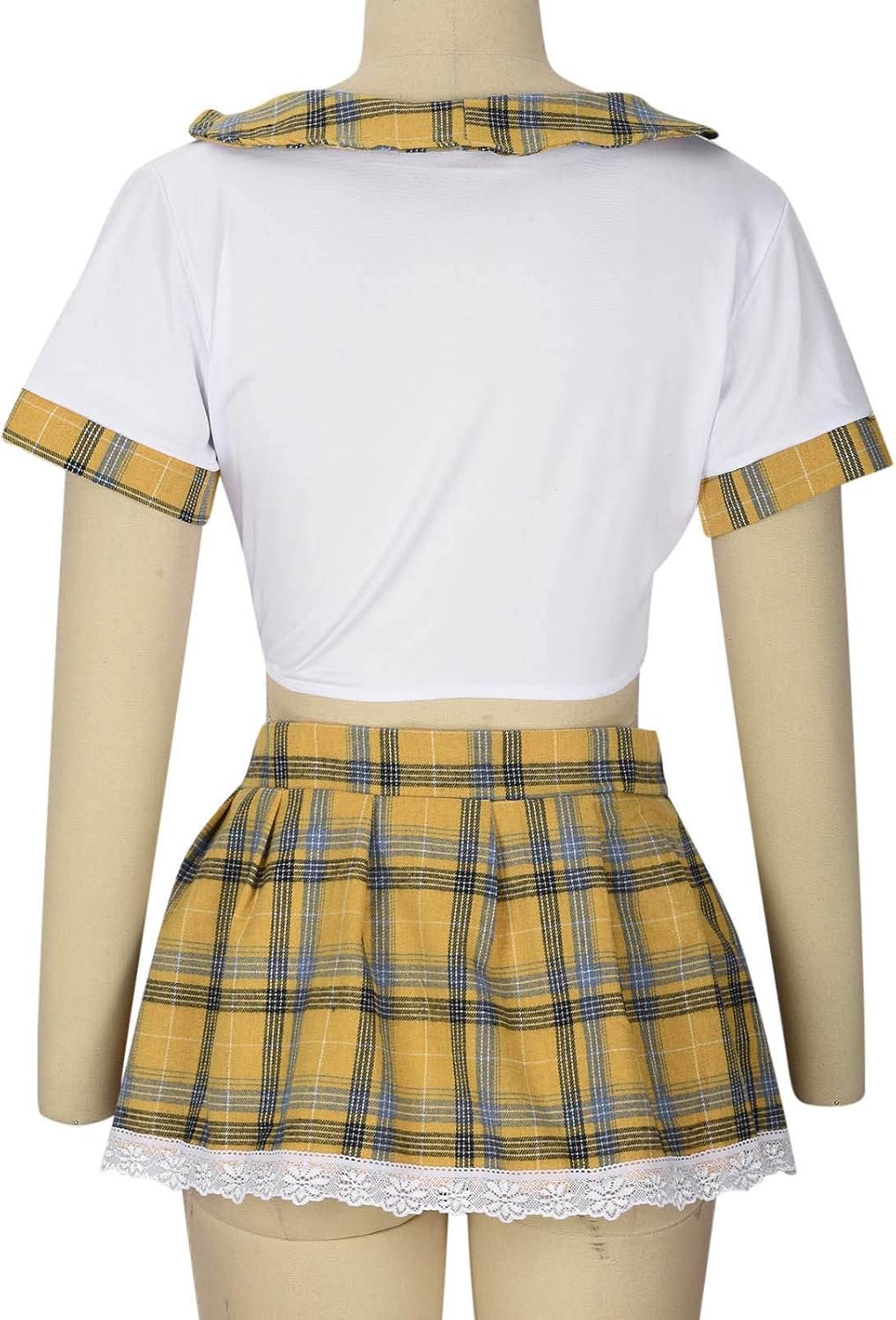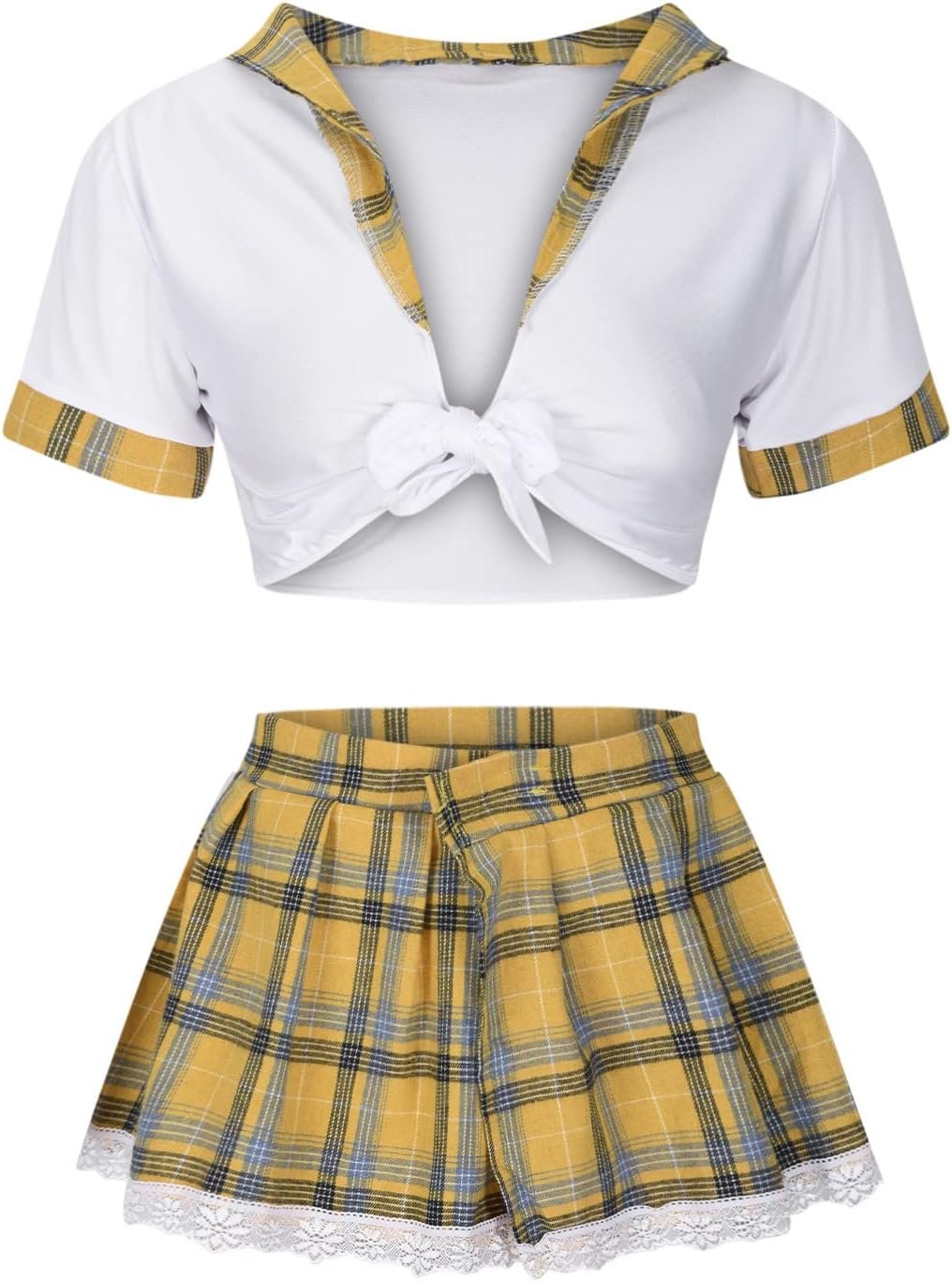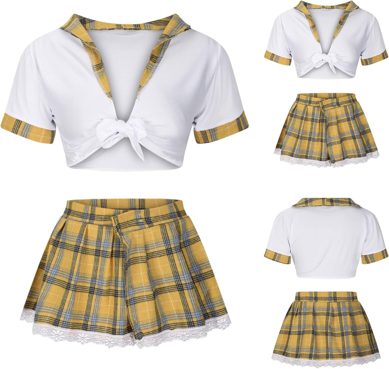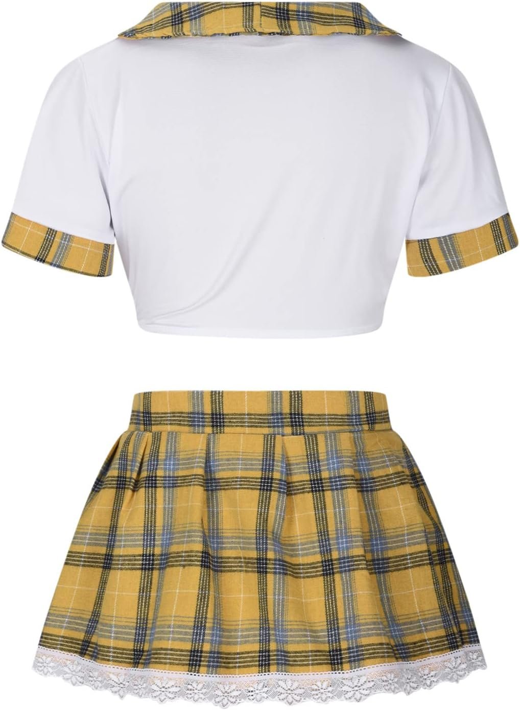 Women Schoolgirl Lingerie Sexy Roleplay Student Costumes Lingerie Set Crop Top and Mini Plaid Skirt Uniform Outfits