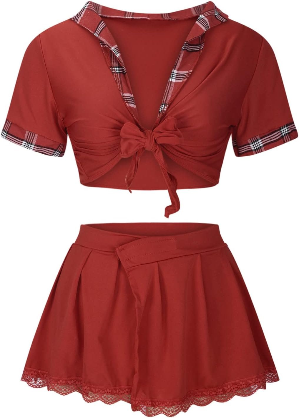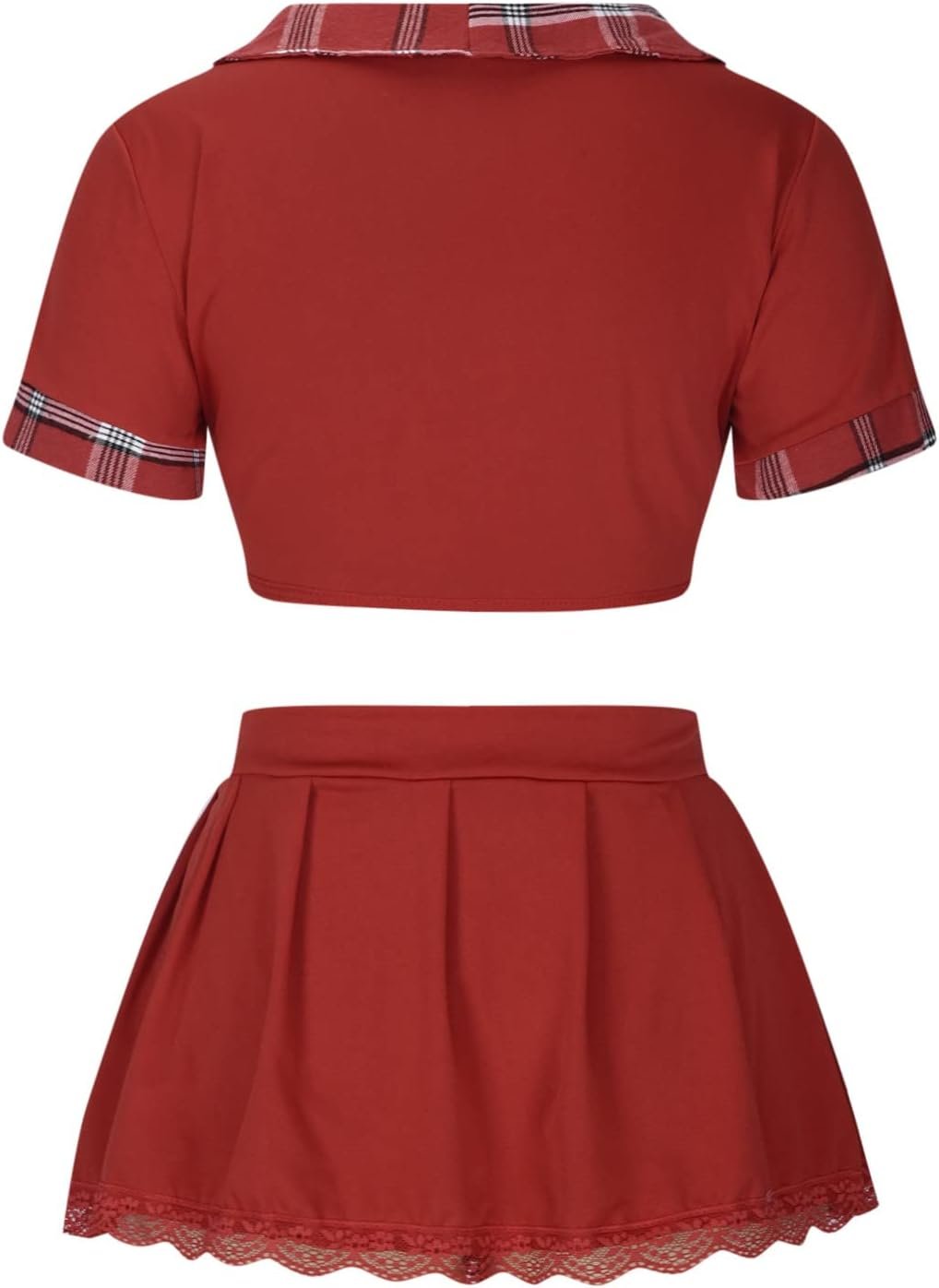 Women Schoolgirl Lingerie Sexy Roleplay Student Costumes Lingerie Set Crop Top and Mini Plaid Skirt Uniform Outfits