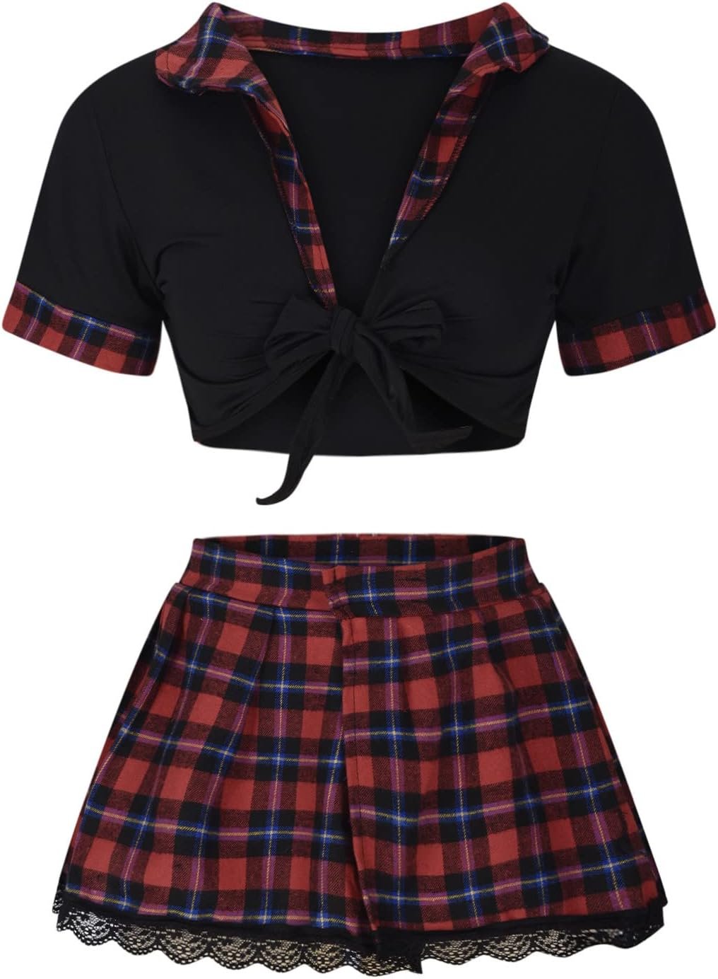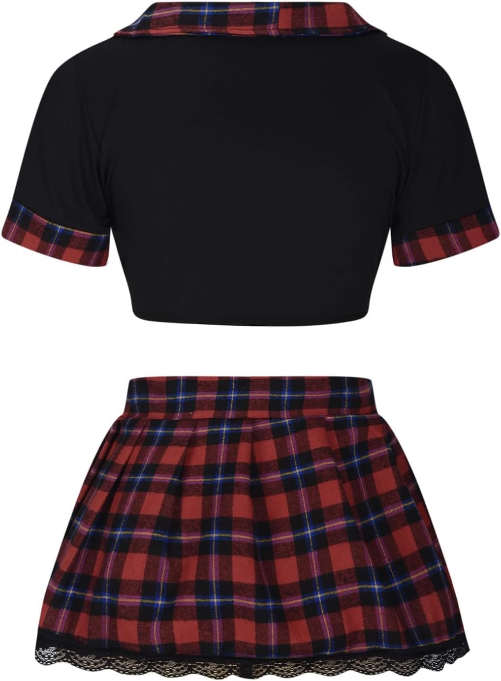 Women Schoolgirl Lingerie Sexy Roleplay Student Costumes Lingerie Set Crop Top and Mini Plaid Skirt Uniform Outfits