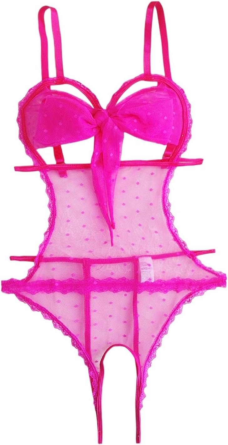 Women Sexy Christmas Lingerie Set Unwrap Me Bow Tie Bodysuit Lace Lingerie for Ladies Valentines Outfit