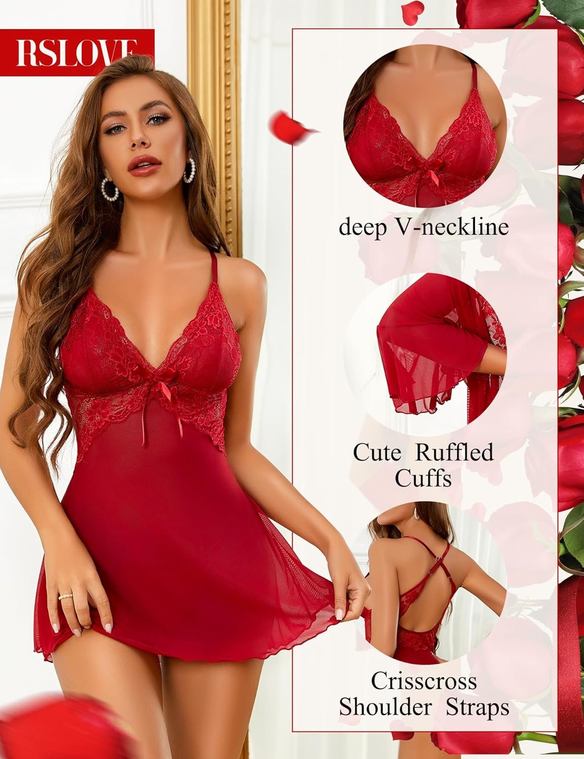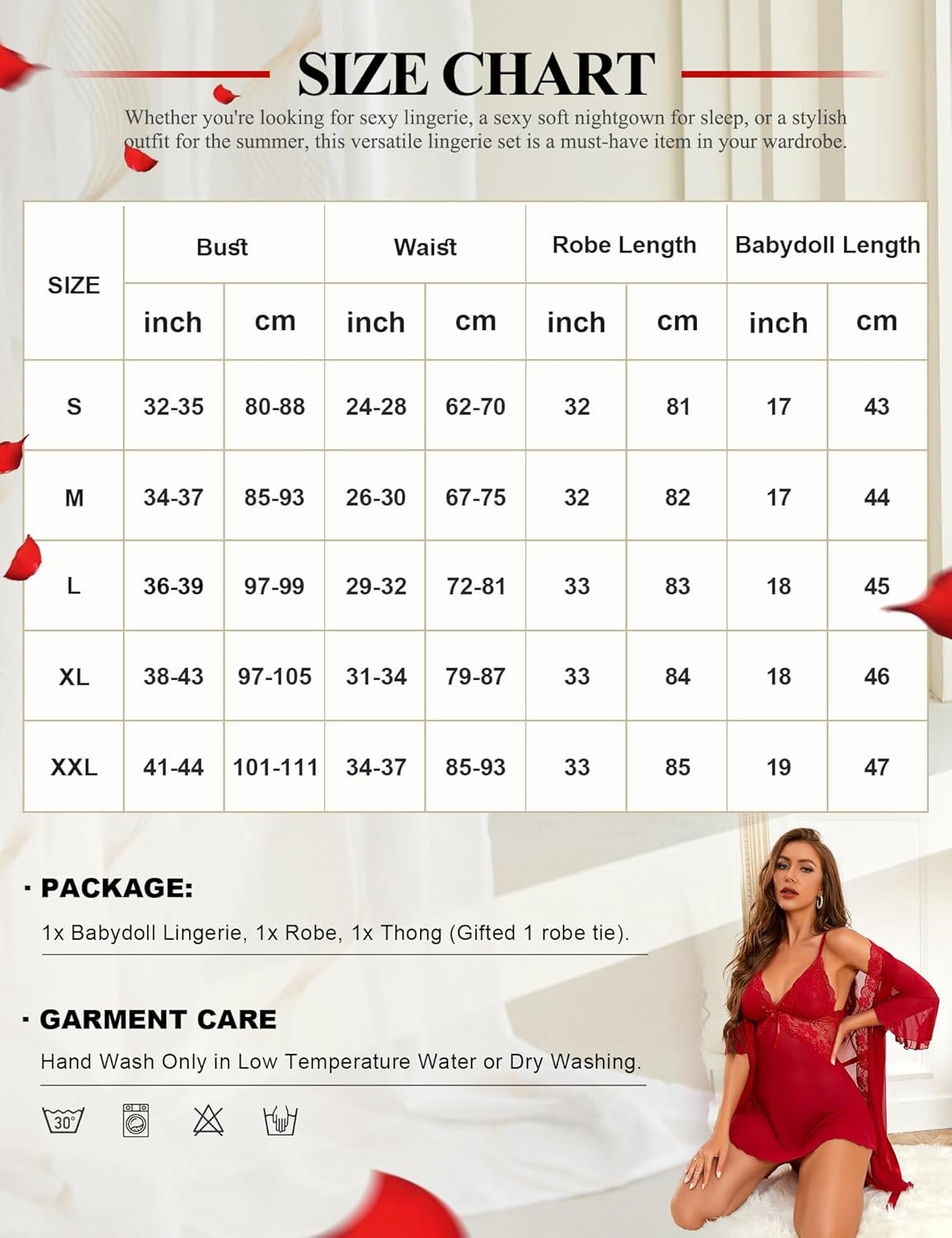 Women Sexy Lingerie Set – 3 Piece Babydoll & Lace Kimono Robe Strap Chemise Sleepwear Mesh Nightgown