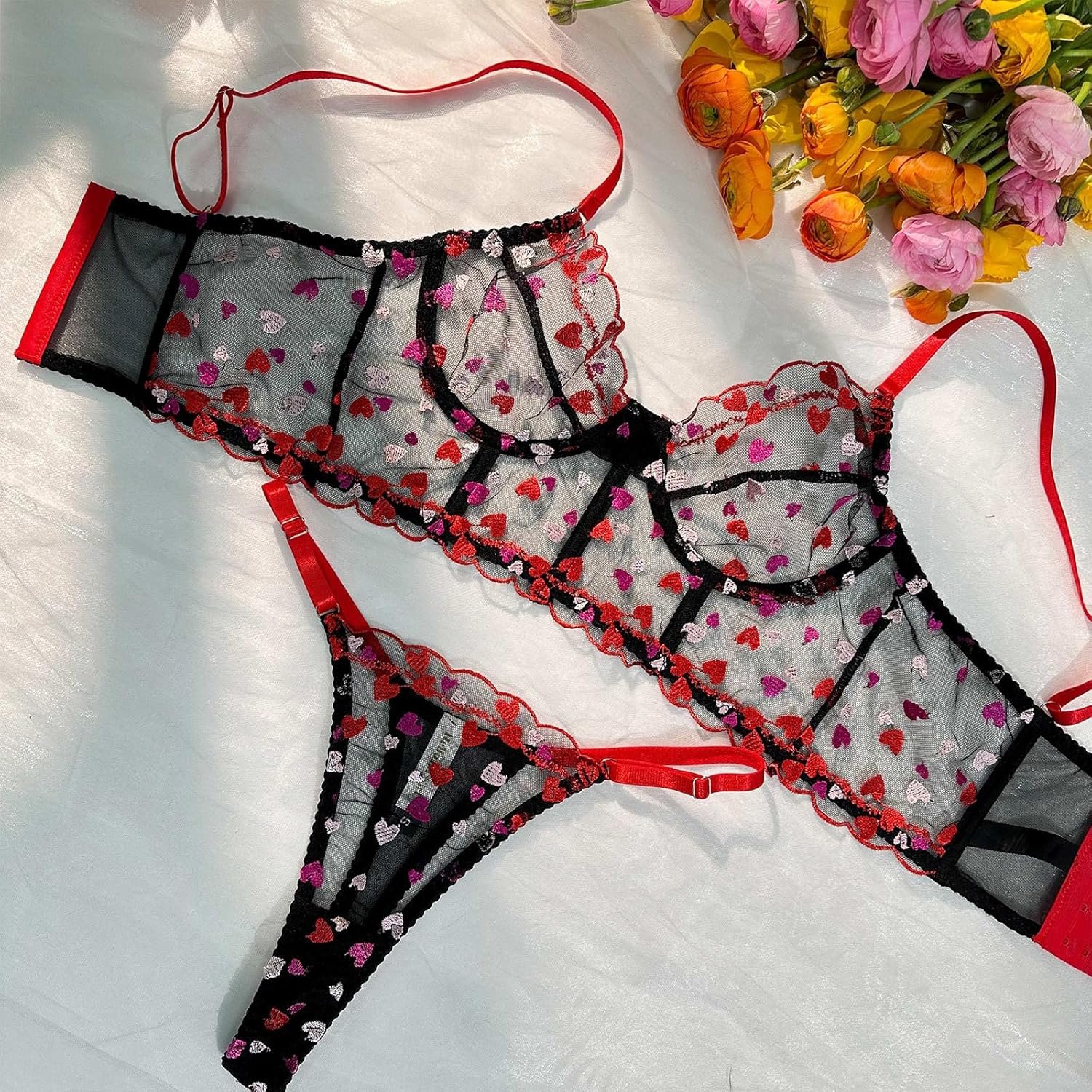 Women Sexy Lingerie Set Champagne Floral Sexy Sheer Embroidered Lingerie Set