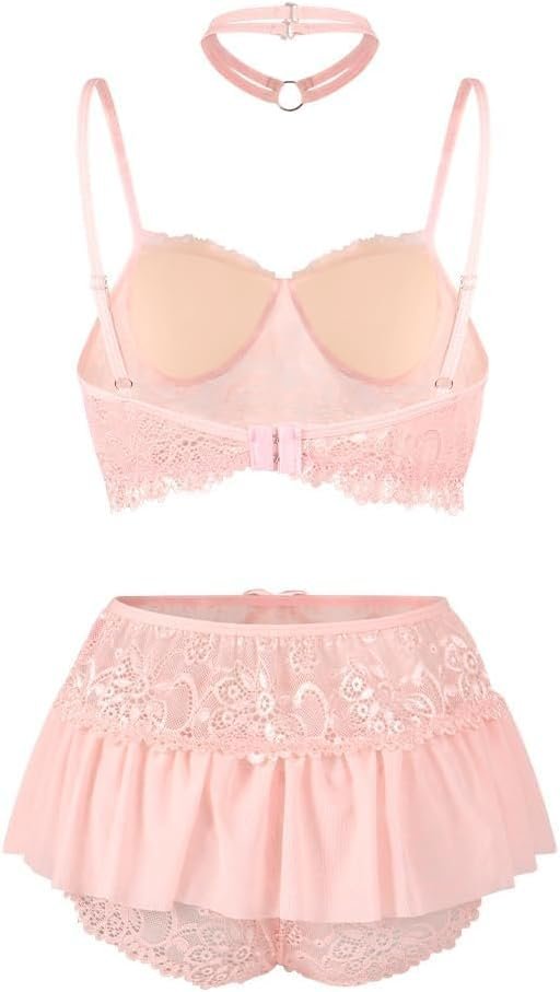 Women Sexy Lingerie Set Naughty 3 Piece Bralette, Mini Skirt with G-String Push UP Bra and Panty Dress Lingerie Outfits