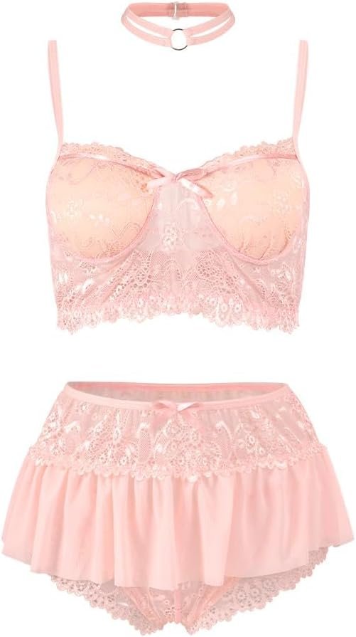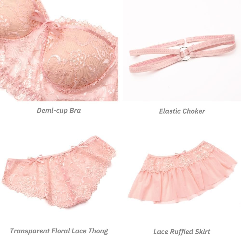 Women Sexy Lingerie Set Naughty 3 Piece Bralette, Mini Skirt with G-String Push UP Bra and Panty Dress Lingerie Outfits