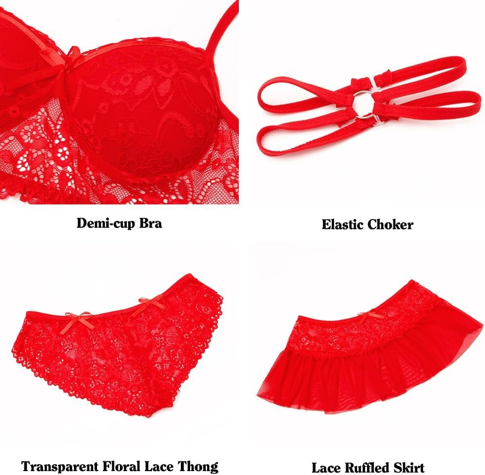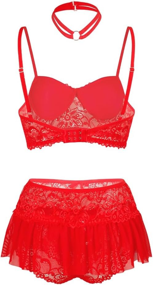 Women Sexy Lingerie Set Naughty 3 Piece Bralette, Mini Skirt with G-String Push UP Bra and Panty Dress Outfits