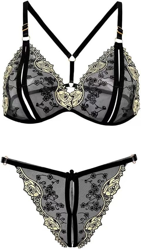 Women’s Bra and Thong Set 2 Piece Lace Trim Lingerie Set Set for Sex Naughty Sexy Cutout Teddy Babydoll Slutty Exotic Boudoir