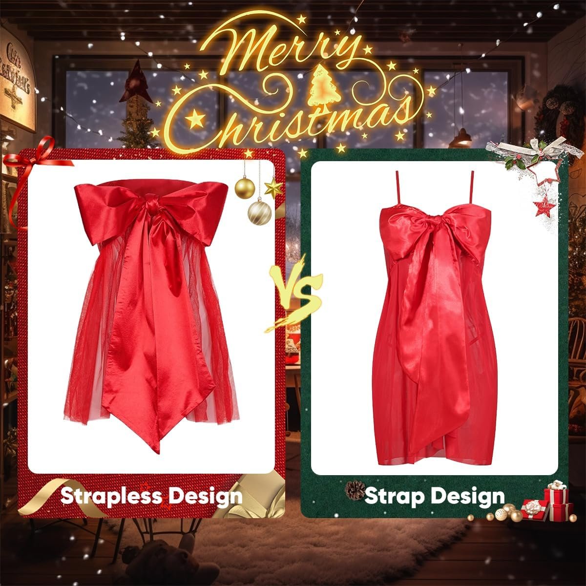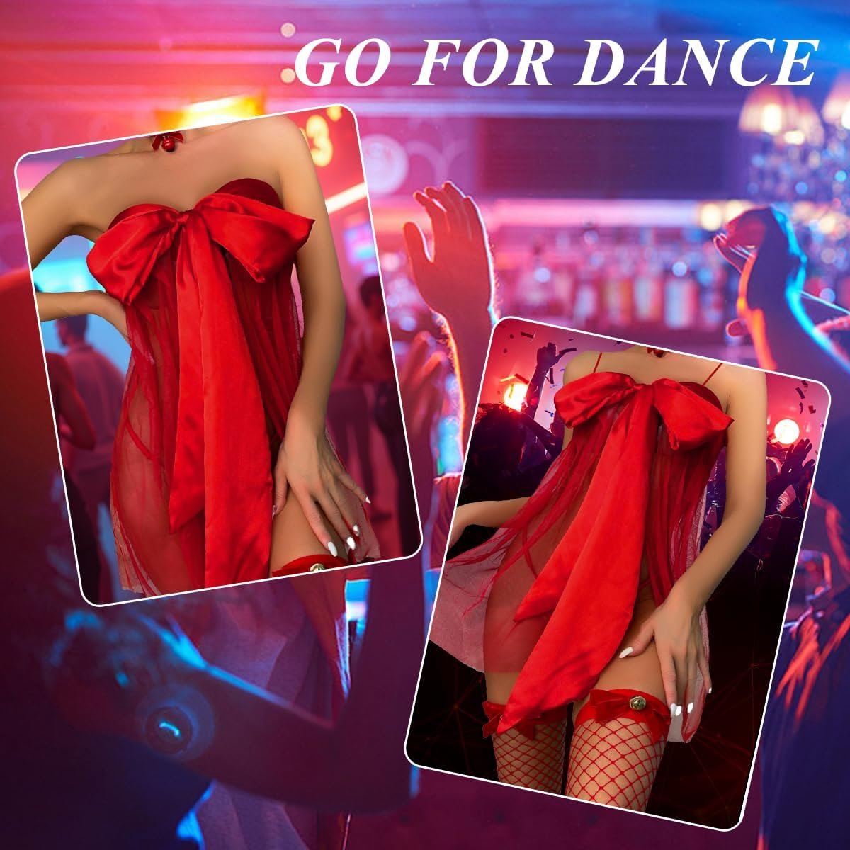 Womens Christmas Lingerie Santa Strappy Babydolls Red Lingerie Lace Chemises Bow Tie Sleepwear with Panty