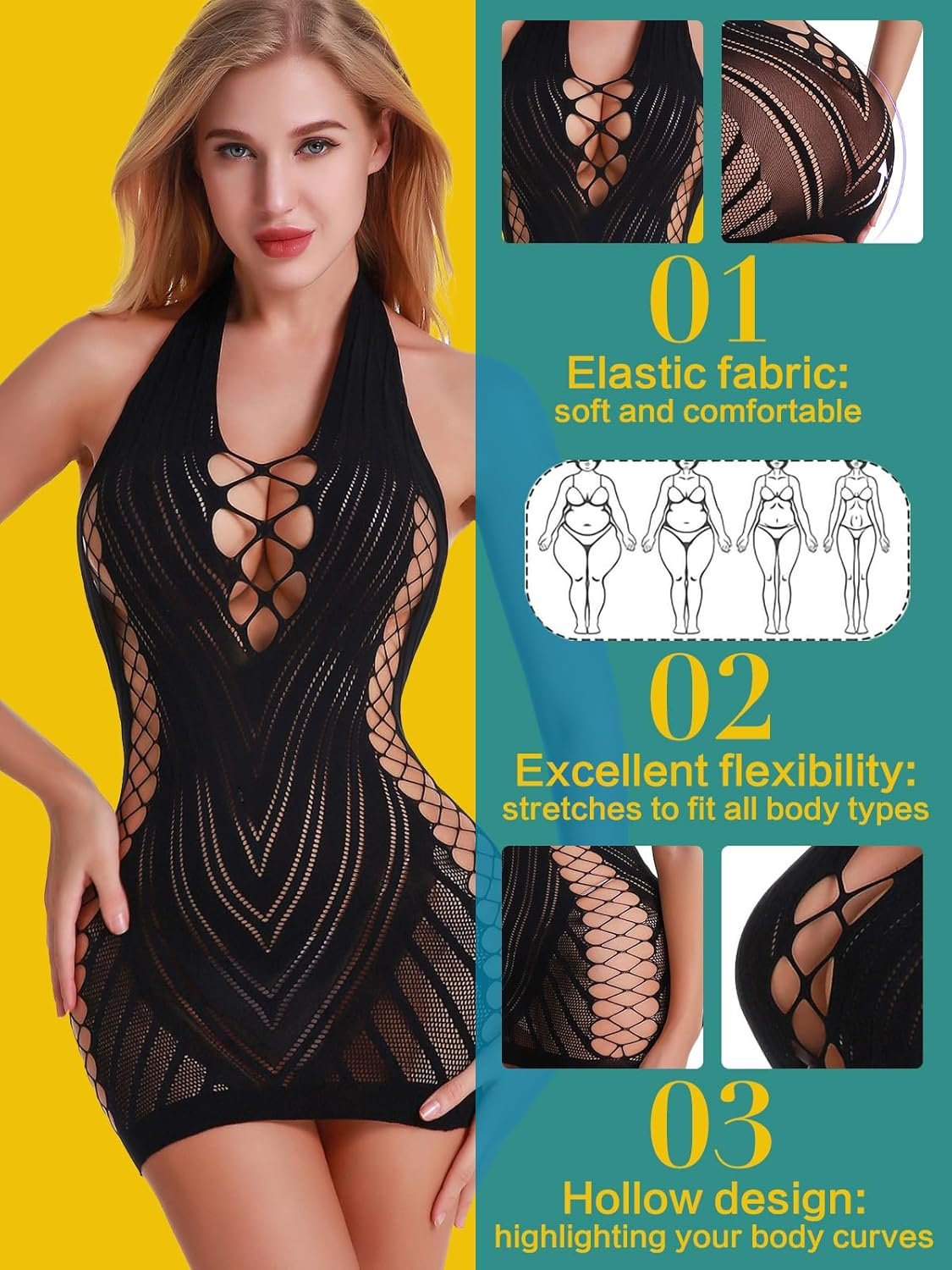 Women’s Lingerie Women Fishnet Babydoll Lingerie Dress Chemise Halter Nightwear Mini Teddy Dress DIY Stripper Outfits