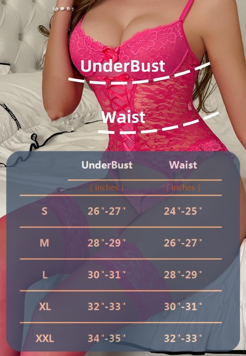 Women’s Sexy Lingerie Set with Garter Belt Lace Bodysuit Teddy Baby Dolls Panty with Stockings